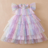 فستان بناتي الأميرة بلون قوس قزح مطرز بالترتر 3 6 8 سنوات ملابس تنكرية لحفلات الأطفال على شكل وحيد القرن ملابس كعك للحفلات للأطفال في سن الحبو أزياء صيفية جديدة لأعياد الميلاد