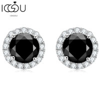 IOGOU 2022 العصرية المرأة القرط 6 مللي متر الأسود مستديرة هالو مويسانيتي وأقراط الأصلي 925 فضة مجوهرات فاخرة هدية