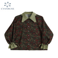 الخريف Vintage نمط الأزهار الطباعة فضفاضة المرأة بلوزة قميص الكورية عادية أكمام طويلة للسيدات زر البلوزات الإناث