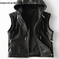 Matrouicardi ربيع الخريف الفاخرة أنيقة كول الأسود بولي Leather سترة جلدية للرجال مع هود زيبر أكمام سترة الرجال الملابس 2023