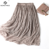 بيردتري 100% تنورة التوت الحرير النساء التطريز الدانتيل مكتب سيدة التنانير مع بطانة مزدوجة الصيف الشاطئ تنحنح كبير جديد B36557QM