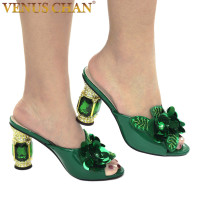 أحدث اللون الأخضر مضخات الأفريقية حذاء الصيف عالية الكعب إيطاليا النساء أحذية الزفاف حجر الراين أنيقة النساء شبشب للصيف الأحذية