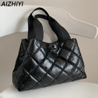 حقيبة كتف قطنية منتفخة للنساء ، حقيبة حمل مبطنة ، حقيبة يد فقاعية ، محفظة متسوقين كبيرة ، سحابة مبطنة ، حقيبة يد علوية