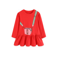 تي شيرت بأكمام طويلة للفتيات مع تنورات وحقيبة مطبوعة ، بلوزات أطفال ، تي شيرتات للأطفال ، قمم ، ملابس خريفية ، قفز متر ، 2-7 طن