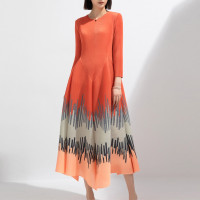 فستان نسائي مطوي ، رقبة مستديرة ، فضفاضة ، مطبوعة ، كبيرة ، قلادة ، فستان فانوس ، موضة راقية ، مقاس كبير ، أنيق ، جديد