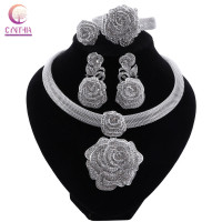 سينثيا دبي المرأة الفضة مجوهرات مطلية مجموعات الزفاف الأفريقي الزفاف حلية هدايا للسعودية العربية قلادة سوار أقراط