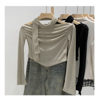 AMII بساطتها تي شيرت المرأة 2023 ربيع جديد صغير المتخصصة تصميم جميع مباراة مكتب سيدة مائل الرقبة فضفاض التطريز الأعلى 12342274