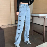 سراويل جينز نسائية عالية الخصر واسعة الساق ، بنطلون فضفاض ، فضفاض ، مستقيم ، كاجوال ، ملابس الشارع النسائية ، الربيع ، الخريف ،