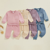 طقم من قطعتين لطفل رضيع وفتاة ، سويتر مخطط بأكمام طويلة مع بنطال خصر مرن وجيوب من 0 إلى 3 سنوات