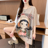 المرأة متوسطة الطول قصيرة الأكمام فضفاضة المناسب المتضخم تي شيرت ، البطن تغطي القمة ، القطن الخالص ، النسخة الكورية ، الصيف
