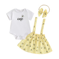 رومبير مطبوع على شكل نحل للفتيات الصغار ، طقم تنورة وحمالة رأس ، ملابس حديثي الولادة من 3 قطع ، ملابس بأكمام قصيرة ، ربيعية