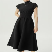 فستان نسائي أنيق أخضر مطوي ، برقبة دائرية ، أكمام قصيرة ، مرقع ، فساتين طويلة ، كاجوال ، مكتب ، ملابس الشارع ، جديد ، موضة ، سيدة