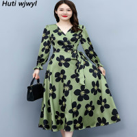 5XL الخريف والشتاء حجم كبير الملابس النسائية 2022 موضة جديدة الشارع عادية زر معطف التلبيب حزام فستان محكم من عند الصدر ويتدلى بشكل واسع الصلبة معطف