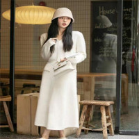 المرأة أنيقة محبوك الدعاوى ، البلوزات الإناث ، تنورة Vintage ، عالية الخصر ، الخريف ، الشتاء ، 2 قطعة مجموعات