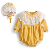 طفلة طويلة الأكمام القطن السروال القصير ، حديثي الولادة بذلة ، الدانتيل ارتداءها ، زهرة القبعات مجموعات ، الأميرة ، الكورية ، الخريف الملابس ، جديد