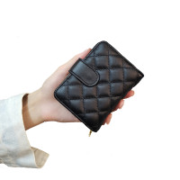 محافظ قصيرة مواكبة للموضة من جلد البولي يوريثان حقيبة نقود رفيعة ورقيقة مزودة بسحّاب غير رسمي أسود بمشبك بسعة كبيرة