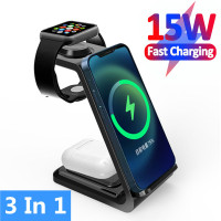 3 في 1 15 واط شاحن لاسلكي حامل حوض ل أبل ساعة 8 7 AirPods آيفون 14 13 12 11 برو ماكس التعريفي محطة شحن سريع