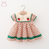 ملابس صيفية للأطفال فساتين بسيطة منقوشة للفتيات بأكمام قصيرة للأطفال على الموضة بياقة البحرية للأطفال بعمر 0 إلى 3 سنوات