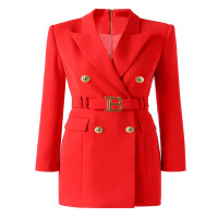 فستان سترة حريمي مرصع ، كم طويل ، ياقة محفورة ، أزرار أسد ، صدر مزدوج ، جودة عالية ، موضة مصممة ، جديد ، صيحات الموضة