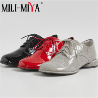 MILI-MIYA الكلاسيكية تصميم الدانتيل يصل النساء براءات الاختراع والجلود مضخات بلون الكعب سميك جولة اصبع القدم ربيع الخريف أحذية جيئة وذهابا السيدات