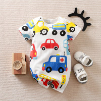 رومبير أبيض مطبوع على السيارة للأطفال ، قطن ، ياقة مستديرة ، أكمام قصيرة ، ملابس أطفال ، جمبسوت أولاد حديثي الولادة ، الصيف ، 1: 1: