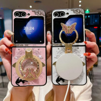 جراب هاتف مغناطيسي لسامسونج جالاكسي زليب ، حامل حامل ، ماس لامع لامع ، غطاء حلقة ثلاثية الأبعاد ، 5G ، 4G ، 3