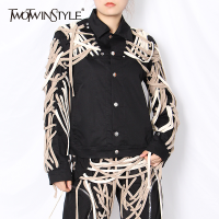 TWOTWINSTYLE ضمادة عادية المرأة سترة التلبيب كم طويل أسود حجم كبير السترات الإناث موضة جديدة الملابس 2022 الربيع