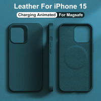 لحافظة for Magsafe الجلدية الفاخرة المغناطيسية لهاتف iPhone 15 14 13 Pro Max Plus مع حافظة رسوم متحركة ملحقات غطاء ناعم