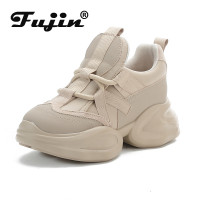 Fujin 8 سنتيمتر جديد جلد طبيعي المرأة الصيف جوفاء الهواء شبكة منصة إسفين أحذية رياضية مكتنزة الخريف الربيع احذية عصرية غير رسمية